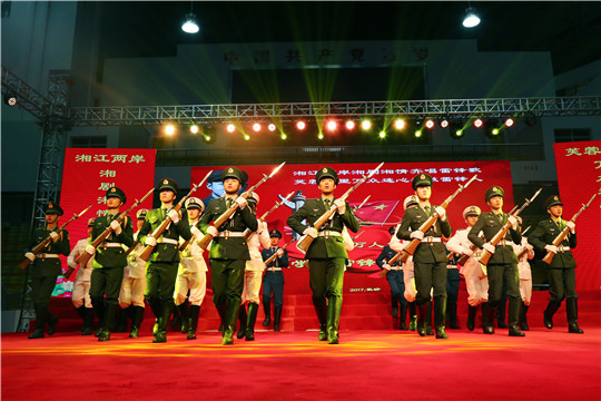 活动现场,我院陆海空士官学员齐唱《学习雷锋好榜样》拉开活动序幕,台下学员集体齐立相互应,“学习雷锋好榜样、忠于革命忠于党”响彻全场,推进活动走向高潮。士官学员三军仪仗队花枪表演一出场就惊艳了现场万余志愿者。海军、陆军士官学员表演的是平面旋转和原地转枪,而空军士官员则展示了行进间转枪。帅气的表演引发了全场喝彩,掌声雷动。随后,万名学雷锋志愿者在数百名湘剧艺术家的引导下,用通俗唱法和极富湖湘特色的湘剧艺术形式来唱《学习雷锋好榜样》。通过这种传统文化创新的方式,全民齐唱、联唱、传唱《学习雷锋好榜样》,引导全社会大力弘扬雷锋精神。现场,许多单位、志愿者团队和个人争相呼应,表示要深入学习雷锋精神,深度理解雷锋文化,以做雷锋人为荣!