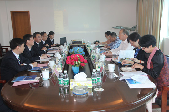 10月13日上午,浙江国际海运职业技术学院党委书记陈松华一行人来我院参观交流,我院党委书记陈勇、院长助理朱国军、教务处处长彭圣文等人陪同来访者参观了停机展示坪以及教学实训场所,双方就专业建设等相关问题展开了交流。