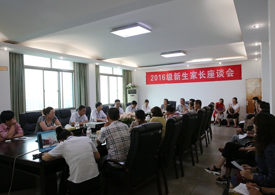 9月11日上午,我院2016级新生家长代表座谈会在圭塘校区办公楼五楼会议室举行。学院党委书记陈勇、党委副书记蔡海鹏、基础学院院长雷世平出席座谈会,与新生家长代表们面对面进行交流。会议由党委学生工作部部长张希跃主持。