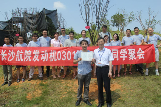 陈书记亲临植树现场为发动机0301班颁发捐赠证书
