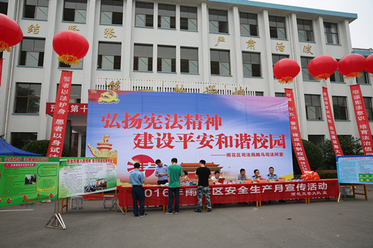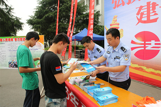 6月7日下午,我院保卫处邀请雨花区跳马镇司法所、雨花区公安局跳马派出所、雨花区公安局跳马交警中队联合在学院跳马校区举办“弘扬宪法精神 建设平安和谐校园”为主题的法制、交通安全宣传教育活动。
