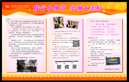据悉,此活动是为了帮助学生践行“读万卷书,行万里路”的人生理想,帮助学生将“大美好”解构为可细化和有可操作性的具体行为。这一活动也是沿袭学生处之前开展的“见到老师问声好,做文明有礼航院人”、“今天,你赞美了吗”等一系列活动的理念,将行为训练和习惯养成的做法进一步推广和深入,引导和组织学生坚持有益的行为,形成良好生活习惯,养成积极健康的心理品质。(学生处 黄上上供稿)