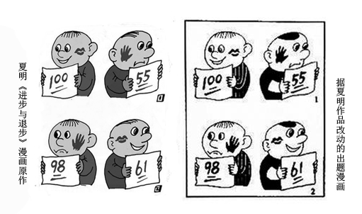 夏明漫画作品,右图为高考作文漫画,根据左图夏明原作改编(图来源于网络)