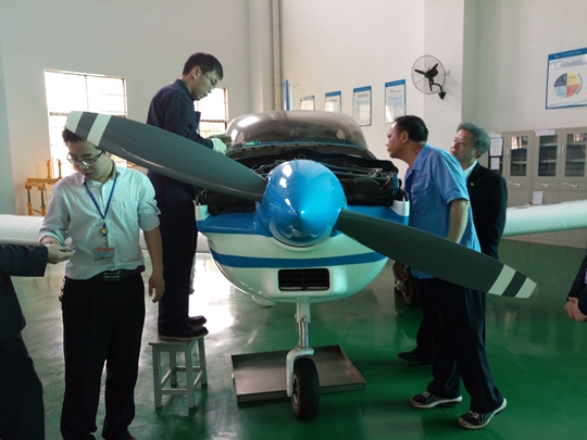 在进行试车之前,我院聘请的教授级高工彭朝荣大师对全体试车团队成员进行了飞机试车理论培训。他详细讲解了活塞发动机的结构、控制原理及维护,发动机的试车流程,并着重介绍了民用航空器地面试车的行业标准,特别强调了整个试车过程中的安全性。在试车实践过程中,试车团队的全体成员在彭大师的指导下亲自动手操纵飞机控制仪表,细致查看各项参数是否正常,体会发动机操纵系统、机舱增压系统、液压系统等正常工作状态,并认真听取彭大师的指导意见,确保了试车任务圆满完成。