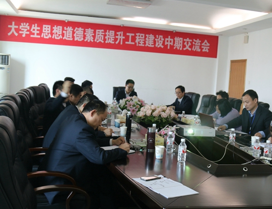 近年来,我院大学生思想道德素质提升工程建设取得了一定成绩,目前在建的省级项目为15个,为加强项目管理,促进项目建设,3月31日下午,学生工作部在圭塘校区五楼会议室组织召开大学生思想道德素质提升工程省级项目建设中期交流会。学院党委副书记蔡海鹏,学生处领导、各二级学院党总支书记(副书记)及相关工作人员参加会议。会议由学工部部长张希跃主持。