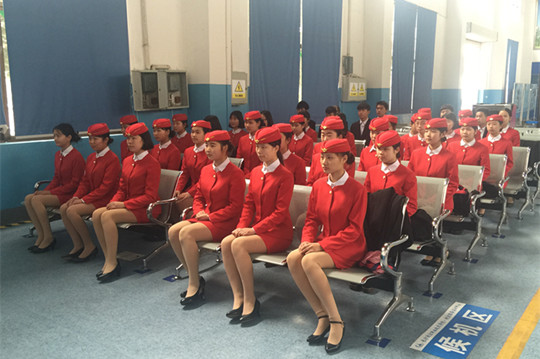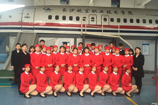 培训学员在航空服务实训中心合影