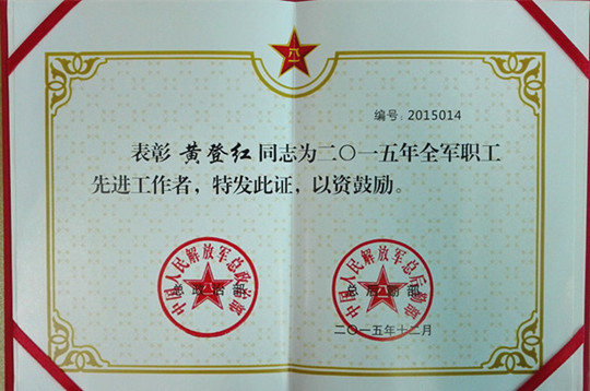 近日,我院机械学院黄登红教授被总政治部、总后勤部表彰为2015年全军职工先进工作者。