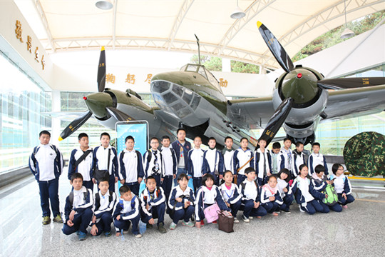 同学们在功勋战斗机——杜-2飞机前合影