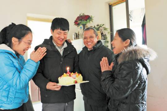 昨日恰巧是小彭爷爷彭爹69岁生日,看到孙子的两位老师专程买来生日蛋糕,彭爹激动地说:“家里好久都没热闹了。”小彭告诉记者,爷爷六十大寿时,他与爷爷两人只在家里吃了碗汤圆。而他从8岁起就从未过过生日,也没有人给他唱过生日歌。
