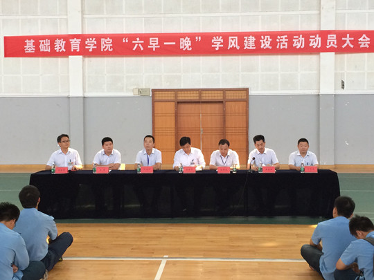 10月9日,基础教育学院在圭塘校区体育馆召开“六早一晚”学风建设活动动员大会,基础教育学院院长雷世平、书记黄世卿出席会议并对“六早一晚”活动的内容、意义等进行宣讲,会议由基础教育学院副院长谢智慧主持。