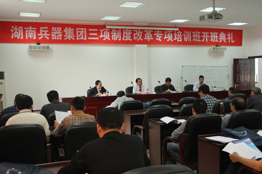 10月26日上午,湖南省兵器集团三项制度改革专项培训班开班典礼在我院培训中心举行,湖南省兵器集团公司总经理喻明尧、我院副院长陈湘黔等出席开班典礼并致辞,对培训开班表示祝贺,并对相关工作提出要求。