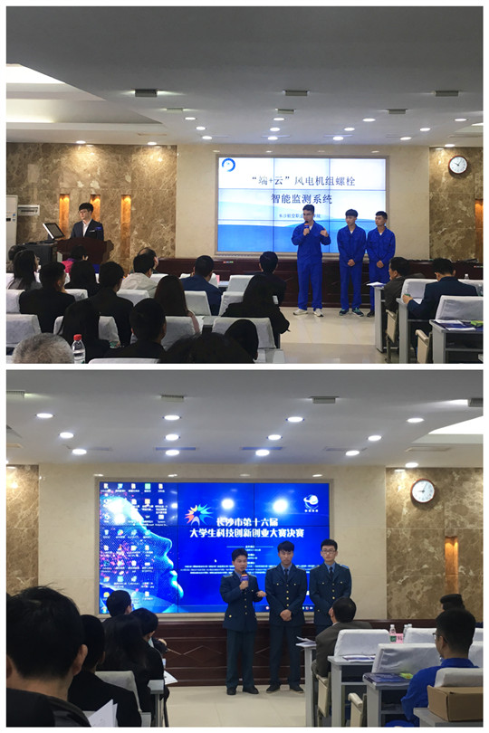 比赛启动以来,共收到来自国防科技大学、中南大学、湖南大学等25所在长高校择优推荐的128个科技创新项目,最终仅41支参赛团队参加决赛。比赛现场,各参赛团队遵循科学性、创新性和实用性原则,分别从项目背景分析、产品介绍、市场分析、企业规划等 方面展示自己的项目,评委老师根据各创业项目的可行性、资金分配、竞争优势、公司战略等方面进行提问。经过长达三个小时的激烈比拼,由机制学院严勇等老师指导的《“端+云”风电机组螺栓智能监测系统》和盛科等老师指导的《平面锉削智能化训练与考评系统》项目,分别以专科生组第一名和第二名的好成绩,均荣获一等奖。