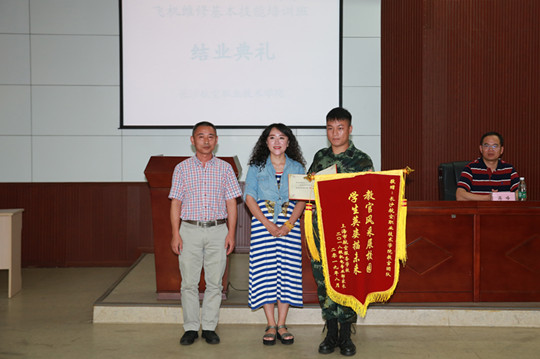 颁奖典礼上,文韬副院长对培训工作进行了总结和说明,高度赞赏了上海市航空服务学校41名学员战酷暑、强体魄、练技能的新时代青少年不屈不饶的奋斗精神。陈强校长对学院为此次培训进行的精心组织给予了高度评价,对培训老师所付出的辛勤劳动表示由衷感谢,并与学生家长代表赠送我校两面锦旗。学生家长代表的发言也充满了对长沙航院领导和老师的衷心感谢和诚挚的敬意。会上,陈强校长给6位学员颁发 “优秀班干”荣誉证书,刘永明副院长给11位学员颁发“优秀学员”荣誉证书。