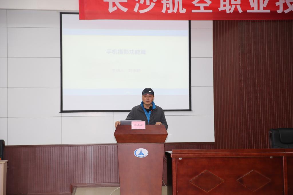 首先,刘永新老师向我们展示了一份统计数据,表明手机摄影已经成为人们记录生活必不可少的工具。比起相机,手机拍摄被更多人喜爱,手机摄影的功能也愈发全面。现如今的许多摄影大赛,也为手机摄影留出了一席之地。紧接着他介绍了不同手机的摄影镜头差异,从功能、创作、处理三个方面,以华为和苹果两个机型为例,主讲了手机摄影的使用技巧。并引导现场的师生们尝试使用手机进行对焦、测光、修容以及拍摄照片,用手机中HDR、人像、全景等功能应对各种情景,最后达到拍出不逊于相机的照片。通过老师的现场教学,大家对手机摄影技巧有了一个更全面的掌握。