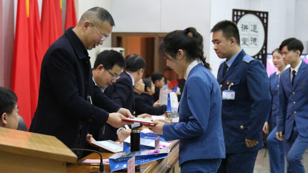 颁发优秀工作者证书。