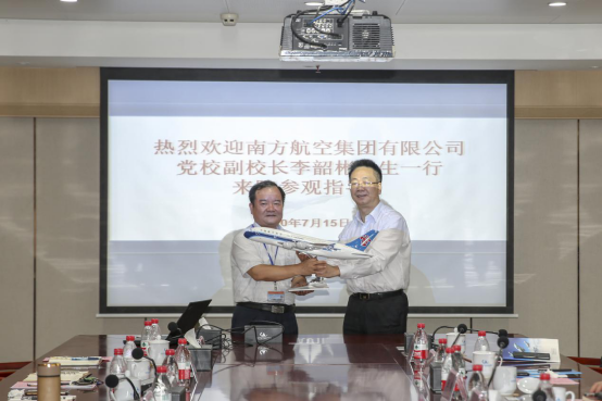 李韶彬代表中国南方航空对学院的建设发展、办学特色给予高度评价,并介绍了本次调研的背景和目的,希望通过调研深入了解彼此,在院校建设、机务维修与培训等方面学习取经,同时大力开展人才输送和校企合作,共同推动中国民用航空建设发展。