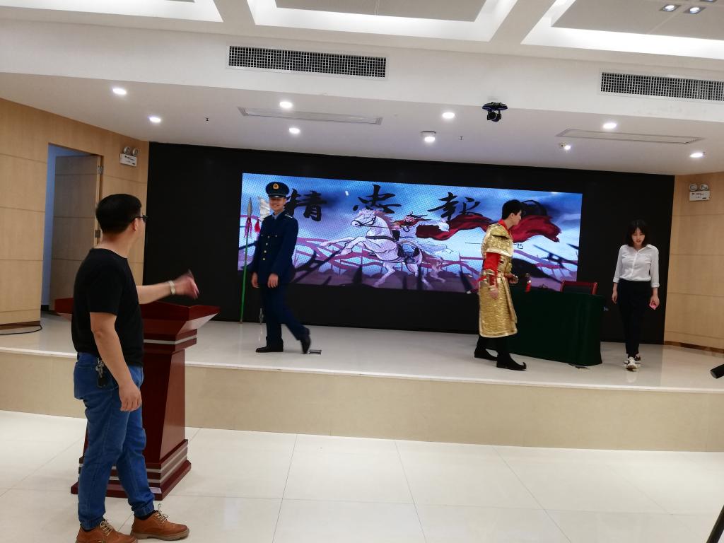 杨英伟团队在指导学生排练比赛短剧
