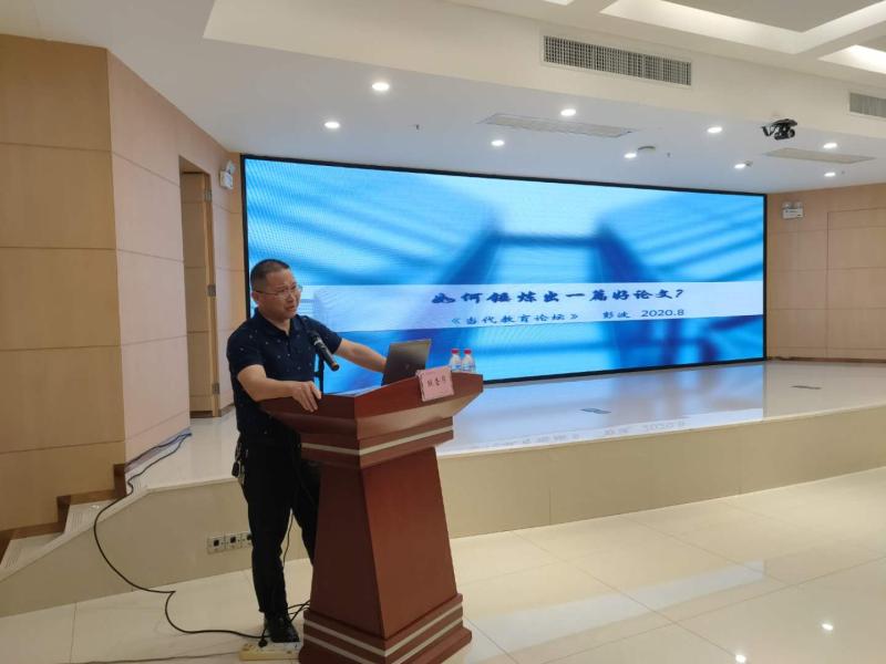8月20日上午,《当代教育论坛》主编彭波研究员应我院邀请,来院作“如何锤炼出一篇好论文”的专题讲座,我院副院长曾全胜、各教学成果奖培育团队成员及部分教师等150余人聆听了讲座,讲座由科研处处长彭连刚主持。