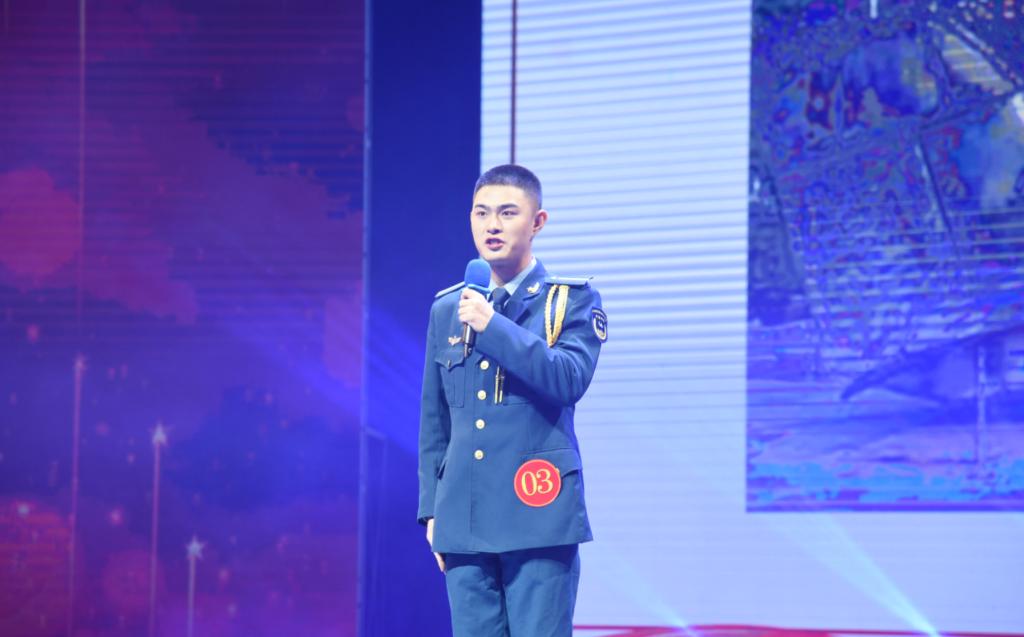 我院选手张沛霖所演讲的作品《热血蓝天铸军魂》立意独特,他结合历史与自身感受,多角度、全方位用清晰流畅的语言、丰富的情感,声情并茂地讲述了人民空军的故事,勾勒了新时代革命军人模样,绘就了吾辈自强不息、不懈奋斗“蓝图”;同时紧紧围绕“奋进新时代、聚力强军梦”的主题,慷慨激昂的演讲声,配合着跌宕起伏的旋律与精美的视频背景,给现场观众带来了充满爱国主旋律、强军正能量的视听盛宴。