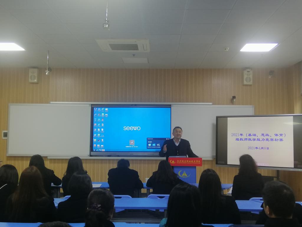 根据学院《2021年度全国职业院校技能大赛教学能力竞赛参赛工作方案》安排, 4月8日下午,由基础学院牵头,思政课部、体育教学工作部参与的2021年教师教学能力竞赛初赛在跳马校区自修楼205教室成功举行。我院副院长朱国军亲临指导并讲话,来自三个二级教学院部的领导、教务助理、教研室主任及全体参赛选手出席。