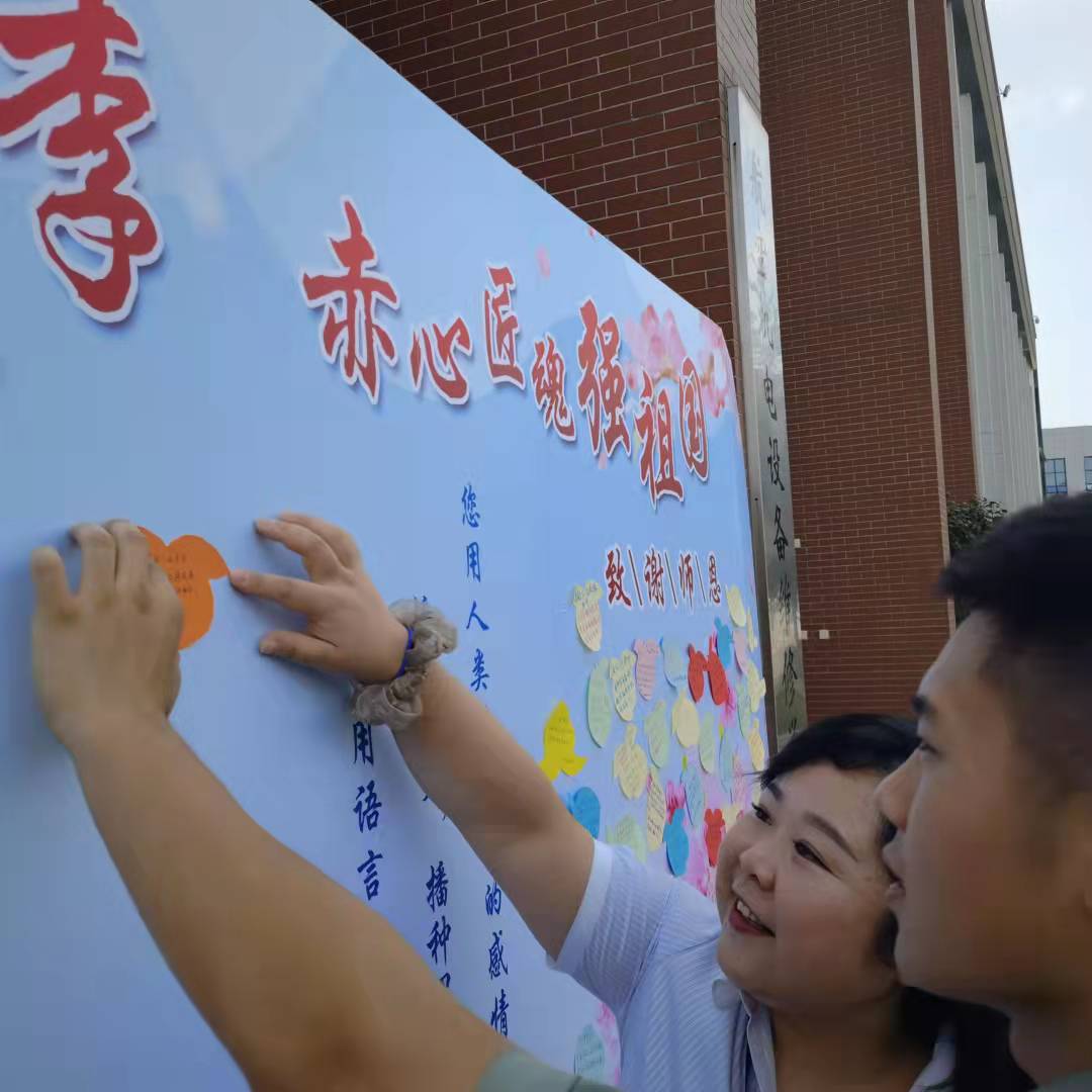 9月9日下午,在航空文化广场前坪,同学们将自己精心制作的心愿卡粘贴在寓意桃李满天下的告白墙上,用满怀深情、感恩的话语表达对老师们的感谢和祝愿。参与活动的老师对自己所熟知的学生送上拥抱、一句鼓励的话语,用温情的行动与言语体现教师对学生的深情。电子1903班吴昕彤同学在卡片上是这样写的——“您有默默无私的奉献,您有春蚕丝尽的精神,您有桃李满天下的硕果,您有惊天动地的伟业!”。园中桃李年年艳,国厦栋梁节节高,节日的空气里弥漫着感恩的温情,幸福的味道。