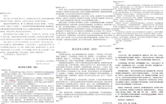 通过线上面向全院青年学子征集致伟人毛泽东的一封信,同学们积极参与,提交作品数不胜数,电气2002班赵信超写到“您曾经豪迈地说过,我们中华民族有同自己敌人血战到底的气概,有在自力更生的基础上光复旧物的决心,有自立于世界民族之林的能力。今日之中国,如您所愿,尽享太平,但却从未敢忘记百年之苦痛。于是,党和国家矢志再创辉煌,在中国共产党的带领下,我们正意气讽发的向着全面建成社会主义现代化强国的第二个百年奋斗目标前进。”学习毛泽东同志的英雄事迹,缅怀毛泽东同志等革命先驱的历史功勋,弘扬革命家们为振兴中华而矢志不渝的崇高精神。