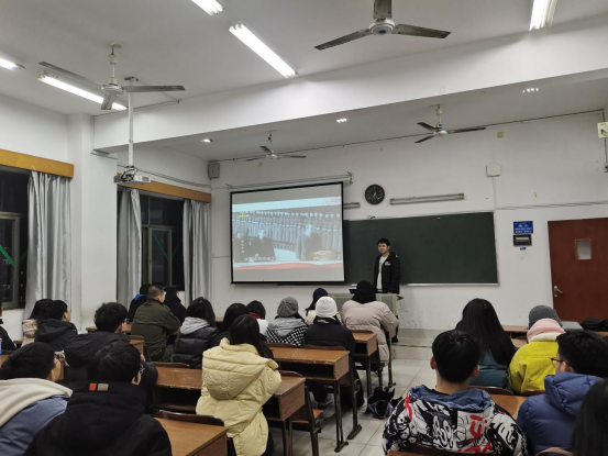 晚19点,同学们来到第二教学楼509教室,观看大型史诗文献著作《毛泽东》,该片真实、客观的展现了一代伟人的辉煌人生,同学们结合实际分享自己的观影感受,周廷毓同学表示“学习毛泽东同志思想精神,把握时代动机,争做新青年,时刻为国家社会发展、为实现中华民族伟大复兴的中国梦贡献自己的一份力量”。
