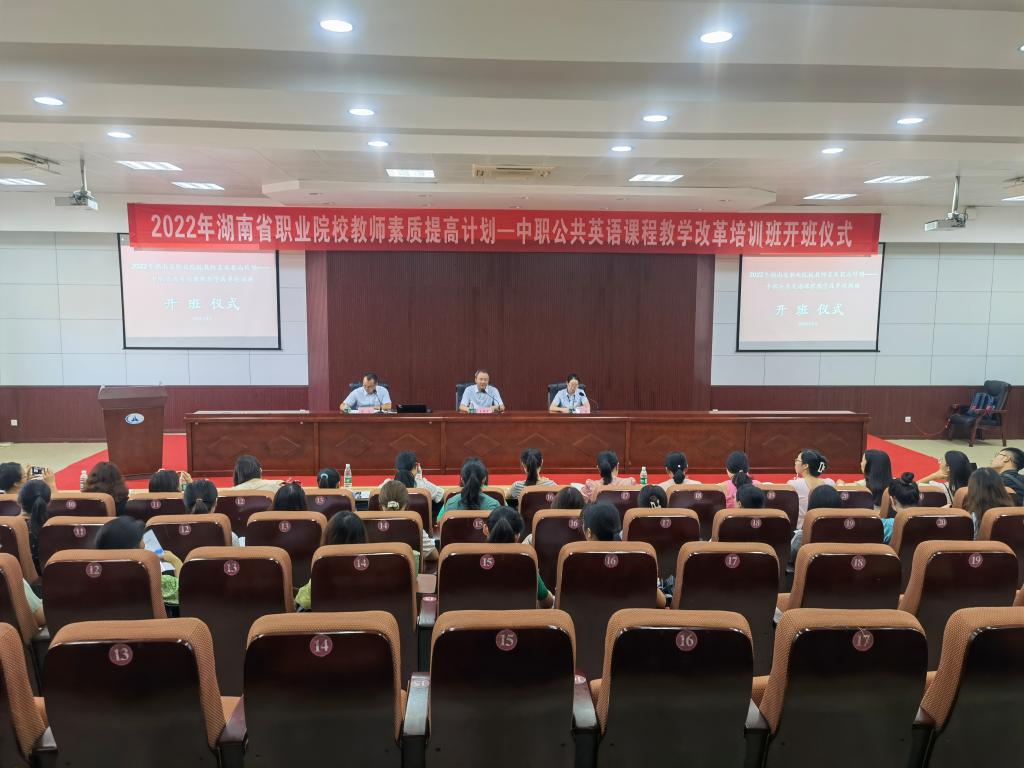 8月2日,由省教育厅主办、澳门十大靠谱的网站承办的2022年湖南省职业院校教师素质提高计划——中职公共英语课程教学改革培训班开班典礼在我院第三学术报告厅举行。学院副院长朱国军等领导出席开班仪式,典礼由继续教育与培训处书记贺义主持。