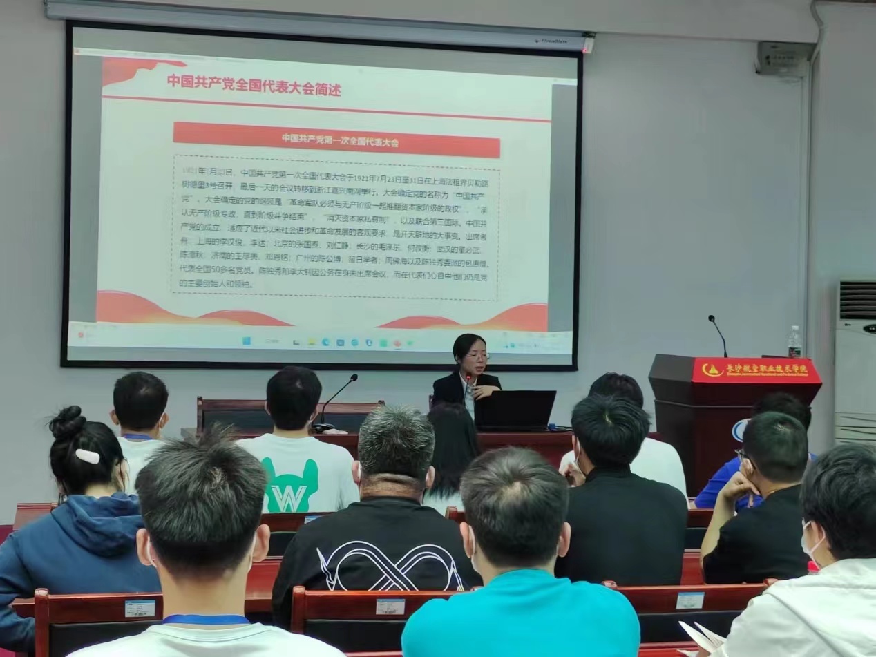 仪式后,黄索偲以“学党史、感党恩、跟党走”为主题给本期入党积极分子上了一堂精彩的党课。她结合中国共产党全国代表大会的发展历程、当前国内外形式,以及二十大报告,为学员系统地讲述了中国共产党的初心和使命,帮助学员们进一步加深了对党的认识,更加坚定了要加入中国共产党的决心,和为共产主义事业奋斗终身的理想信念。她指出,生逢盛世,青年当有为。我国正处于实现中华民族伟大复兴的关键时期,学员们站在革命先驱们铸就的伟大精神之上,正肩负着伟大的时代使命。她号召学员们脚踏实地,勇于担当,将个人梦想融入到实现中华民族的伟大复兴之中,始终不屈不挠、昂扬向上、攻坚克难、勇攀高峰。