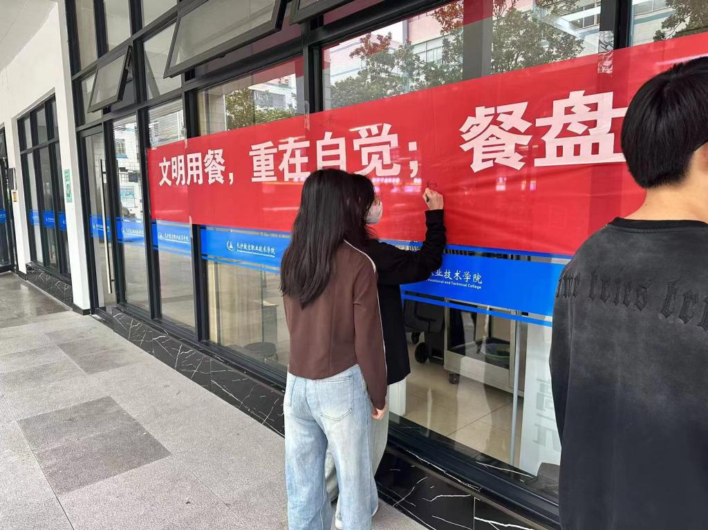 本次活动在二食堂前坪举行,全院积极响应,踊跃参与。大家纷纷在“文明用餐,重在自觉;餐盘回收,贵在坚持。”宣传横幅上签下自己的姓名,做出“文明用餐,集中回收”的郑重承诺,表示自己今后将从文明用餐、一点一滴做起,大力弘扬勤俭节约、艰苦奋斗的传统美德,反对铺张浪费,并在餐后自觉将餐具集中摆放,将一次性碗筷集中丢弃便于处理。