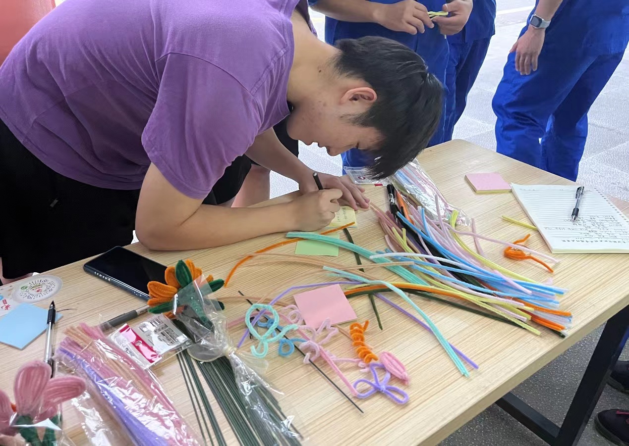 活动以同学们为老师们制作的手工花束为载体,向老师们表达无比真诚祝福。同学们通过小组成员之间的默契和配合将制作的花瓣拼装起来,纯洁的百合花、灿烂的向日葵、秀丽的郁金香,五彩缤纷的花朵里承载的是学生对老师昔日的谆谆教诲、无私奉献的感激和敬仰。大家在绘有梅兰竹菊的贺卡上写下了自己积攒许久想和老师诉说的心里话以及最真诚动人的祝福,建立和谐的师生关系。