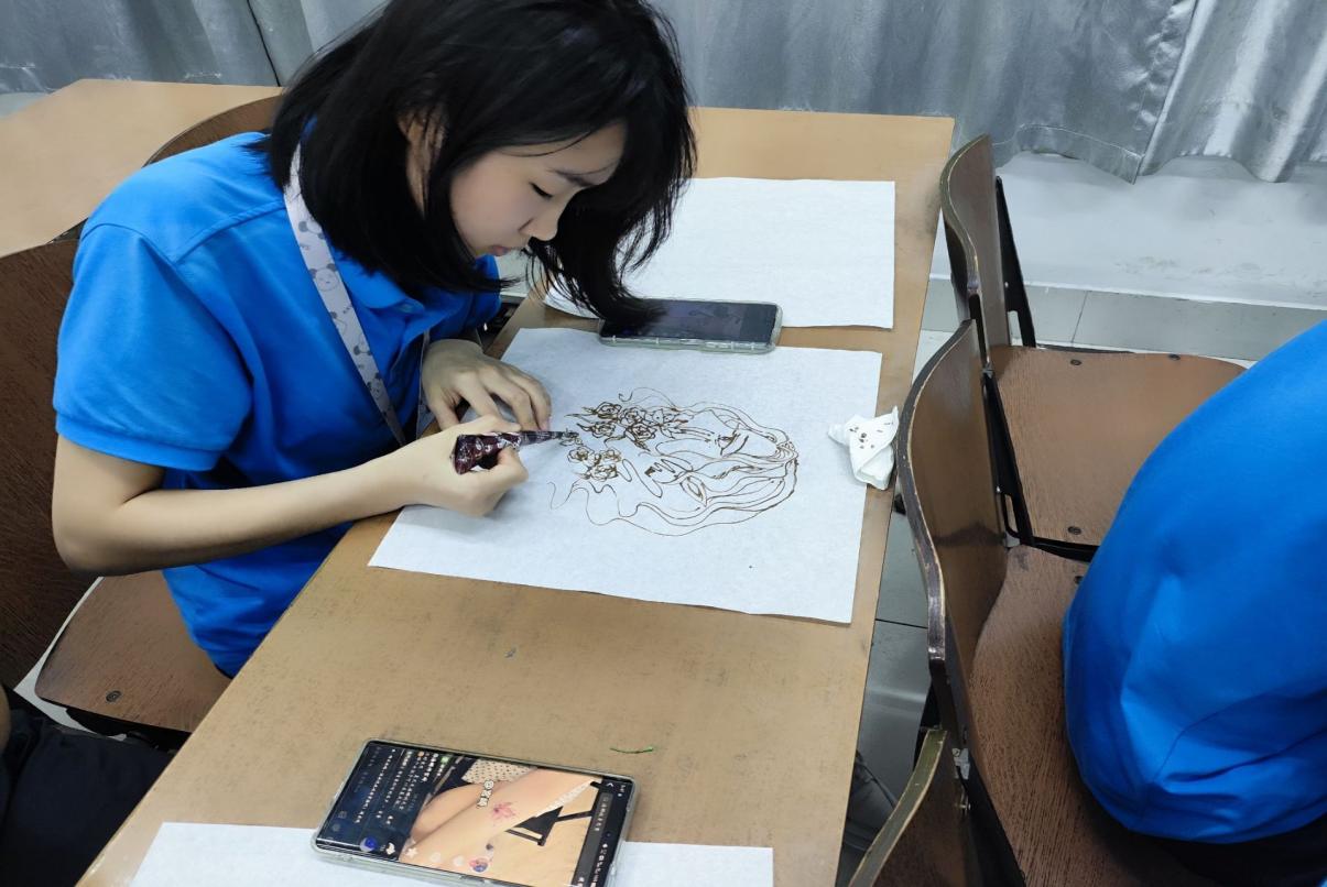 活动分为“心理知识讲解”和“海娜绘画”两个环节进行。首先由主持人讲解心理健康知识以及心理知识对自身的重要性,台下同学积极回答主持人提出的问题,活动现场氛围热烈。在“海娜绘画”环节,同学们拿起颜料在纸上尽情创作属于自己的作品。随着活动的进行,同学间的默契程度也在不断增加,有人负责勾线,有人负责涂色。合作共进的精神深深烙印在同学们心中。最终展示环节,同学们纷纷拿出自己的画作,解释作品内涵,为大家带来欢笑。至此,活动在轻松愉快的氛围中画上了圆满句号。