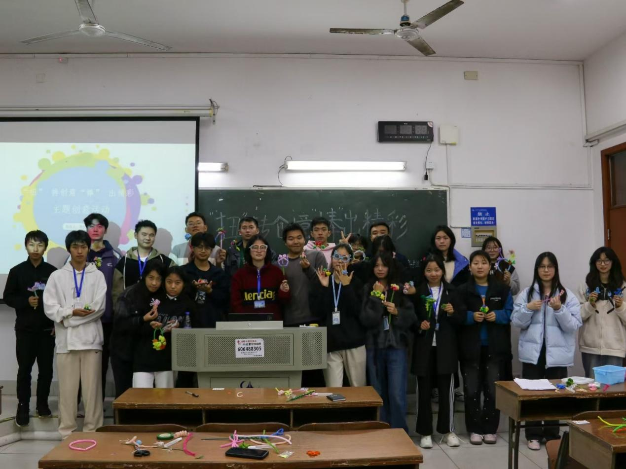 为缓解同学们的学业与工作压力,启发他们的创新性思维,丰富校园文化生活。电子学院于12月2日晚在第二教学楼408教室开展“‘扭’出创意‘棒’出精彩”主题创意活动。
