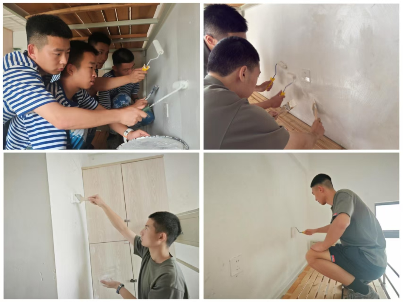 这些青春洋溢的军士生,从叠被子、站军姿的“行家”,摇身一变成为刮腻子、刷涂料的“装修能手”,上演了一场超燃的校园“焕新行动”,共完成了192间宿舍墙面的翻新工作。