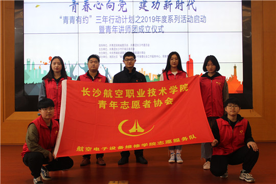 3月28日,为全面贯彻党的十九大精神,深刻领会习近平总书记关于青年工作的重要思想,电子学院青年志愿者服务队参加了由共青团开福区委员会主办、开福区周南秀峰学校承办的“青春心向党·建功新时代”“青青有约”三年行动计划之2019年度系列活动启动暨青年讲师团成立仪式。