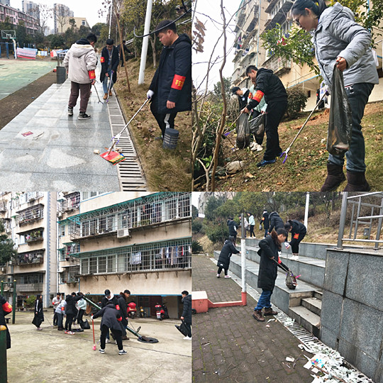 本次活动旨在把学习雷锋精神落实到实际行动中,主要针对社区内绿化带及废弃垃圾堆的处理。在劳动过程中,志愿者们两人一组,分工明确,有的用夹子清理绿化带垃圾、有的带手套捏过年燃尽的花炮碎屑、有的捡拾废弃树枝、还有的同学正在帮忙劝阻街头的不文明现象……在大家齐心协力的合作下,终于将社区上下打扫的干净整洁,社区对我们的志愿者们更是赞不绝口。