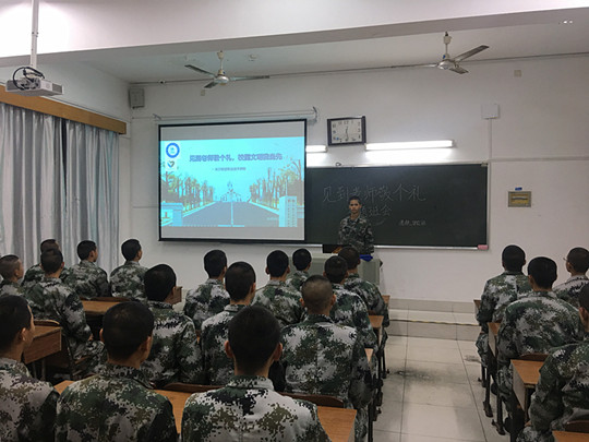 12日上午,士官学员们在第一教学楼前面竖起横幅,身着笔挺的军装向每位经过的老师敬军礼。中午举行了活动倡议仪式,学员们表示要将活动持续坚持21天,形成自觉,变为习惯。当晚各班开展了“见到老师敬个礼,校园文明我当先”主题班会,气氛热烈,各班还专门示范标准的“敬军礼”,并组织了训练,确保敬出军人样、体现精气神。