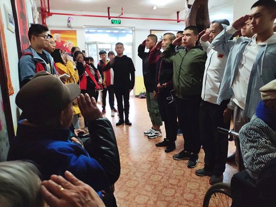 临走时,志愿者们向老兵们致以崇高的军礼,老人们站起身回礼,感动了在场的每一位。志愿者们纷纷表示,以后有时间还会再来探望这群英雄的老兵,既是弘扬传统赓续血脉,更是不忘历史砥砺前行。老兵不老,精神永存!(士官学院 周勇波 舒嫁芮 供稿)