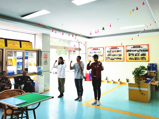 走进永济敬老院,映入眼帘的是老人们慈祥的笑容,路途中的疲惫在慈祥的笑容中一扫而空,老人们缺的不是物质财富,而是温暖的关怀与照顾。此行的志愿者们带着温暖与欢乐走近老人,刚把慰问品放下,便开始为老人们开始表演才艺,捧翼支教队的同学们用毛笔给老人们写下“福如东海,寿比南山”的祝福,心理部的同学用小品、歌声与舞蹈给老人们送上欢乐。十月的冷风吹不进其乐融融的房内,欢声笑语在偌大的房间中传递……