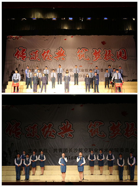 本次大赛经过初选、复赛评选出六个参赛团队和十二个个人诵读精品力作。比赛内容以反映中华民族文化优良传统、具有鲜明时代特色和长远影响力为基础,展现了航院学子青春昂扬、积极向上的精神风貌。参赛作品形式多样,集体诵读和个人读诵穿插进行、领诵和合颂交相呼应等,配以音乐,舞蹈、吟唱等,并将诗词与古现代歌曲、汉服等多种元素相结合,全方位展现诗词的内在含义。航院学子们用青春朝气的表演向我们诠释了古代经典诗文的美感,展现追求美、展现美的情操,表达出对祖国、对中华经典、红色经典文化、对航院的热情与喜爱。比赛最后,杨青云教授带来的表演节目《岳阳楼记》点燃会场,用字正腔圆的声调、富有感情的语言,令全场观众沸腾。