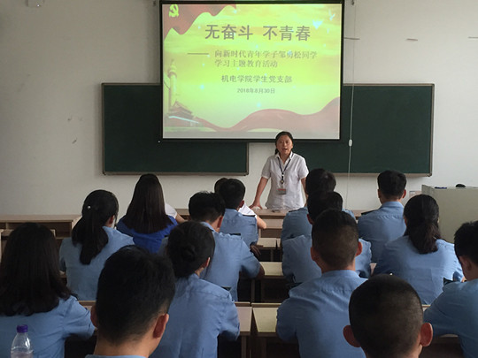 8月30日,机电学院学生党支部在航空楼201教室召开了 “向新时代青年学子邹勇松同学学习主题教育活动”座谈交流会。机电学院党总支副书记谢红桂,以及27名在校学生党员参加了会议。