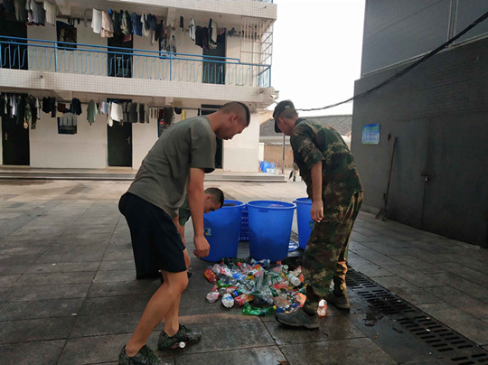 一次环境卫生整治。从开学第一天起,16和17级学员自发组织,对士官营区展开全面卫生整治,将垃圾站进行全面清理,对下水沟、卫生间等各处卫生死角进行彻底打扫,让整个营区面貌焕然一新。