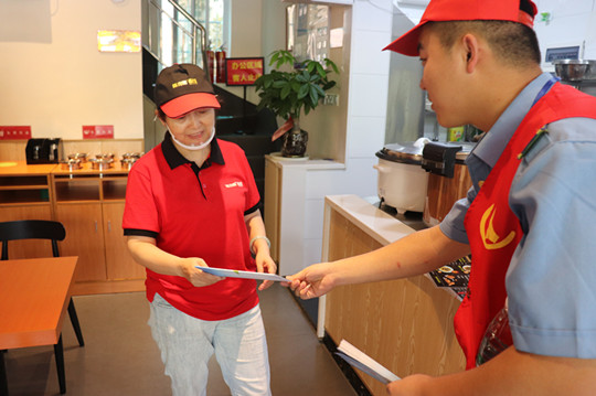 我院志愿者走进社区餐饮店发放《市民公约》宣传手册