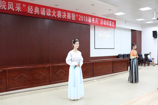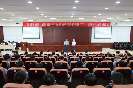 6月14日下午2:30,由图书馆、团委联合举办的“诵国学经典,展航院风采”经典诵读大赛决赛暨“2018读书月”活动闭幕式在学院第三学术报告厅拉开帷幕。各二级学院观摩代表200余人。