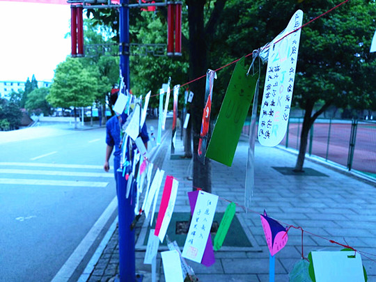 活动前期,各班积极组织同学们利用废旧材料、包装纸、小挂饰等,通过剪、折、画、粘等方法,设计制作出了各种各样精美的书签。有的是卡通人物,有的是漂亮的花草,有的是可爱的小动物,还有的是日常生活用品……内容繁多,想象丰富。“读书日”当天,宣传部挑选出制作精美、别出心裁的作品悬挂展示在主教主马路旁,引来了校园内众多师生的驻足欣赏,他们纷纷感叹于制作者灵巧的心思,感受着他们对书的热爱、理解和感悟。有同学表示,当人们进行网络阅读、在手机中加载电子书签的时候,很难再记起自己曾几何时在书本中留下的那一张纸、那一片叶了。这样的活动,激起了我们内心对阅读的渴望,忆起了邂逅书香的那份美好。