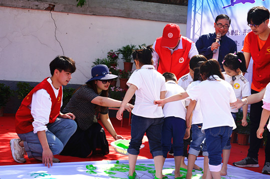 机制学院志愿者们完成签到,领取志愿者马甲、熟悉志愿服务内容等过程后,就积极投入到各自的志愿活动中去了。活动现场,幸福桥社区设置了绿色植物认领台供居民在现场免费认领绿色植物。志愿者们引导幼儿园小朋友们在现场用小脚丫作画,踩上绿色环保颜料,既有童真的乐趣,又能号召大家用低碳与环保的方式走进绿色世界。不仅如此,志愿者们还上街以发放宣传单的形式提倡绿色、低碳、循环、可持续发展的“两型”教育理念,让市民们树立起良好的环保意识。