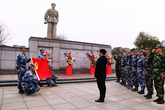 参观完雷锋纪念馆后,老师与学员们在雷锋雕塑前留影纪念,学员共同合唱“学习雷锋好榜样”,高亢响亮的歌声让参观群众情不自禁鼓起了掌,这掌声必将在学员们心中久久回荡、成为永恒记忆!随后,9名预备党员学员在鲜红的党旗前进行宣誓仪式。现场响起阵阵激昂的宣誓声,从内心抒发出对党忠诚的坚定!面对党旗,预备党员们进行了一次特殊的洗礼!