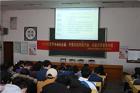 3月22日下午,为迎接世界防治结核病日的到来。我院基础教育学院邀请圭塘社区卫生服务中心主任王丽芳于第一阶梯教室为我院学生进行“开展终结结核行动,共建共享健康中国”主题讲座。