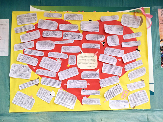 我们将各班感恩的花朵绽放在校园的展板上,在同学们的驻足观看的同时,感恩之花的香气散发到校园的每个角落、每个同学的心里,在这里,我们播种下爱的种子,用青春去灌溉,使感恩之花常开不败。