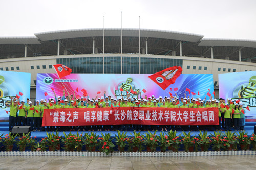 6.26是国际禁毒日,航空机械制造学院100名学生前往长沙贺龙体育中心东广场参加由湖南省禁毒委员会主办的湖南“禁毒之声——唱享健康”大型禁毒主题宣传活动。